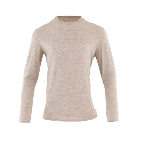 Camiseta de Manga Larga para Hombre 100% Lana Merino, Transpirable, Cómoda y Casual de Moda con Cuello Redondo