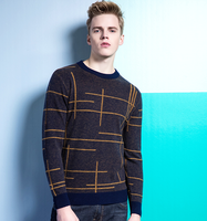 جودة عالية الخريف البني الخفيف صوف ميرينو الرجال طاقم الرقبة طويلة الأكمام طبقة قاعدة الجملة