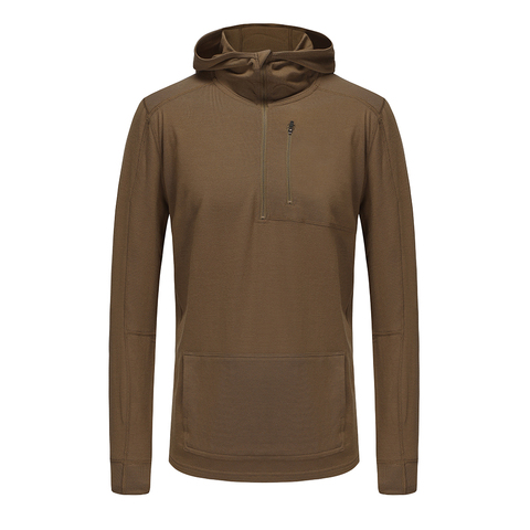 Наружный Повседневный дышащий пуловер из мериносовой шерсти 1/4 на молнии с длинным рукавом с капюшоном для мужской одежды